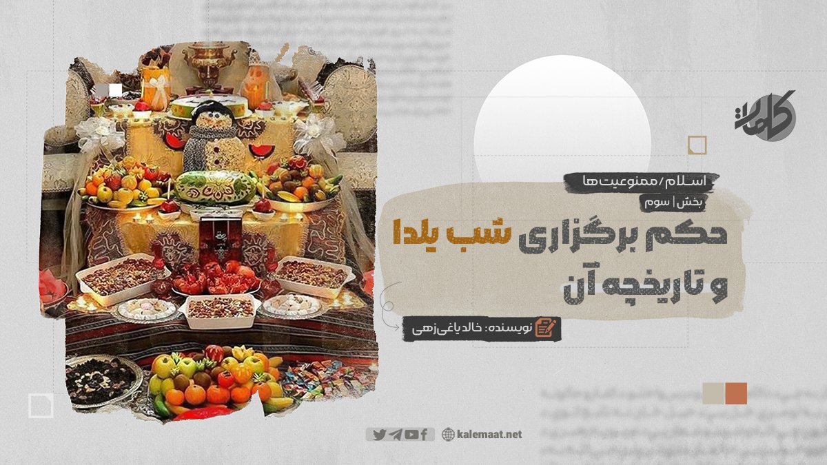 اگر بنگرید میدانید که؛ شب یلدا یک ریشۀ غیراسلامی دارد و حتی از روی تقدیس و گرامیداشت خورشید، که یکی از طبع و خویهای خورشیدپرستان و یا همان مهرپرستان و یا آتشپرستان است و آنان حتی شب یلدا و یا همان شبچله را شب زایش خدای مهر (خورشید) میدانند و با جشن گرفتن چنین روزی، خدای خود یعنی مهر را ستایش و تمجید مینمودند و حتی آئین اوستایی آن را روز اول سال رسمی خود معرفی میکند، به گونهای که میگویند: واژۀ یلدا سریانی و به معنی ولادت است. ولادت خورشید (مهر، میترا) و رومیان آن را ناتالیس آنویکتوس یعنی روز تولد (مهر) شکستناپذیر نامند.[6]
